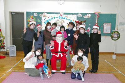 幼稚園や保育園に入る前のお友だちとお家の人が様々な活動に挑戦している共育セミナーなかよしくらぶ。なかよしふぁ〜むでの畑の活動は11月いっぱいで終了し、12月からは会場を交流センターふらりに移して活動しています。 ▽古代の丘での自然観察会 10月はサトイモやサツマイモの収穫を行いました。サトイモの葉っぱは傘のようで、なかよしくらぶのお友達もうれしそう。 収穫したサツマイモは秋の自然観察会を行った古代の丘で焼き芋にしていただきました。自然観察会では植樹体験もしましたよ。 11月の初めには干し柿づくりに挑戦。今年の柿はひとつも鳥に食べられたりせずに美味しく上手にできました。 ▽クリスマスツリーを飾りました ▽楽しいクリスマス会 ▽いよいよサンタの登場です! 11月に片づけをして畑の活動は終了。12月からはクリスマス会に向けて、マラカスやリースを作る工作を行いました。 そして迎えたクリスマス会では、ハンドベルの演奏や紙芝居、エプロンシアター、この日のために作ったお手製のマラカスでの演奏などを楽しみました。子育て支援サポートくらぶの皆さんが前の日から準備してくれた会場もとても素敵です。 子どもたちはサンタさんの登場に大喜び!一人ひとりうれしそうにプレゼントをもらっていました。 共育セミナーなかよしくらぶは新年は1月14日からスタートです。季節の行事や郷土食などを体験していきます。どうぞお楽しみに!