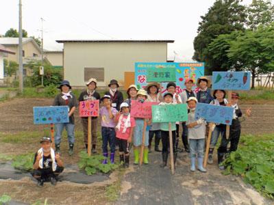 小学生とその家族が、畑での野菜の栽培や収穫、育てた野菜の調理や販売などを体験していく、食の安全安心事業畑の楽耕(がっこう)。家族ごとに担当する野菜の看板を作って畑に設置しました。 ▽どれもアイデア満載のカラフルなかんばんです ▽スタッフに手伝ってもらいながら設置も自分たちで行いました この日は、前の回に耕してマルチシートをかけておいた枝豆の畝(うね)に苗を植えました。 ▽先生に教えてもらいながら苗植えに挑戦! ▽穴をあけたら始めに水を入れてから苗を植えました ▽色とりどりの看板が並びました 収穫できるようになるまで、もうしばらくは除草や手入れがが続きます。みなさん、がんばりましょう!