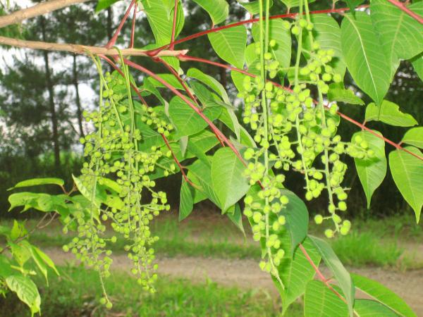 今月初めにいつもの散歩路で出会った花の可憐な姿が気に入って、今はすっかり実になったエゴノキを通りがかるたびに観察している。エゴノキばかりに気を取られて今まで気がつかなかったが、すぐ隣に枝を絡ませるようにヤマウルシがまだ幼い実を垂れている。ウルシといえばカブレるのが怖くて近寄りたくなかったし、ましてや観察など思いもよらなかった。‐‐‐漆は熟すれば枝先で生長し、いよいよ稔れば木木の実が触れ合って枝頭でからからと音をたてる(藤沢周平『漆の実のみのる国』)‐‐‐ 光景は小説の中の話と思っていた。うかつな話だがウルシに実がなることさえ念頭になかった。たしか上杉鷹山は熟した果実を乾かして木蝋を搾ることの産業化をはかったのではなかったっけ?商品として流通させるにはどれほどのウルシが必要だったのだろうか?気が遠くなりそうだ。「6次産業化」などという言葉が頭をかすめた。あの藤沢周平が描いた光景をウルシの実を通して目の当たりにできると思うと、我が老後の生活もすてたものでないと感じ入ってしまうのだ。ところでもう一方のエゴノキ、花におとらず実も光沢があって美しい。
