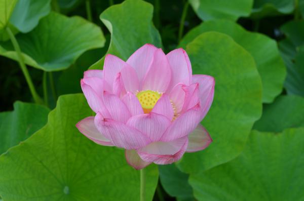 地区有志の方が休耕田ではぐくんでいるハスの花が咲き始めた。この春にその存在を小耳にはさみ、花の季節の到来を心待ちにしていた。ただのハスではない。1951年千葉市内の遺跡から発掘され、翌年2000年以上の眠りから覚めて発芽した貴重なハスの末裔だ。遺跡の発掘現場からたまたまハス花托が出土したことを聞いた植物学者が、小中学生や一般市民の協力を得て発掘した3粒のうち、1粒だけ発芽させることに成功した貴種(稀種、奇種)だ。1952年7月18日に初めて開花したこのハスは、植物学者(大賀一郎)の名をとって『大賀ハス』と命名され、米国ライフ誌に「世界最古の花・生命の復活」として掲載されたそうだ。発掘現場の遺跡の年代から、縄文末期〜弥生初期と推定されるこの古代のピンクを、まずはじっくりと観賞しよう。心が洗われるような上品な色合いに、2000年以上前の人たちは同じこの色を見てなにを感じ、どんな生活をしていたのか、瞑想は尽きない。フラワー長井線の上り列車がハス田の横を通過して時庭駅に入っていった。