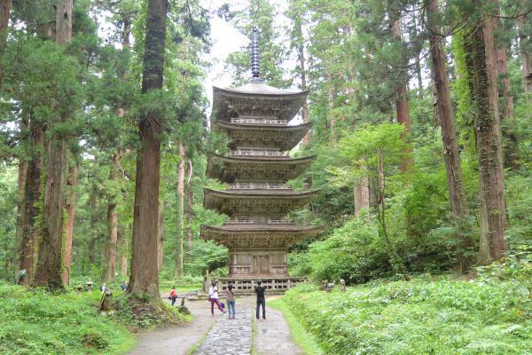 花スポ、9月のトレッキング教室は羽黒山の石段登り。四捨五入すれば平均?0歳と推定される一団が2446段の石段に挑戦した。四捨五入年齢70歳の偏屈老人にとっては恐る恐るの参加となった。まずは神妙な面持ちでガイドさんの説明を聞き、覚悟を決める。「隋神門」をくぐり、石段は「継子坂」の下りから始まった。これも2446段の一部だと思えば、下り坂よできるだけ長く続いてくれと祈りたくなる。祈りもむなしく下りはすぐに終わり、五重塔を目指して平らな道を進む。左手に天然記念物「爺杉」を拝む。樹齢1000年だそうだが、もう何代にもわたって樹齢1000年を唱えているそうで、本当のところはわからない。 ・・・・1000年と言っていれば区切りがいいからナ・・・杉の林間に爺杉と並ぶようにして羽黒山の目玉「五重塔」(国宝)の姿が見える。平将門の創建だそうだが、現在のものはおおよそ600年前に再建されたものというから室町末期・戦国初期の建築になる。五重塔は「一の坂」の入り口、いよいよ石段登りの始まりだ。足元を見ながら慎重に歩を進める。次は「二の坂」。一番の急坂だそうだ。石段一段ごとの高低差が小さいので予期したほど脚にダメージがこない。喘ぎながら二の坂を上りきると二の坂茶屋。一息つきながら見おろす庄内平野と日本海の眺望に疲れをいやされる。最後は「三の坂」。登りのキツサは変わりない。 ガイドさんが絶好のタイミングで説明を入れ休ませてくれる。 ようやく山頂に到着。山頂には「三神合祭殿」「大鐘」「歴史博物館」などが立ち並び、神気が立ち込めているのだろうが、この時ばかりは2446段を登りきったわがパーティの達成感・満足感に圧倒されたようだ。 いつも感じることなのだが、現代のような重機・建機がない時代に、すべて人力で巨大な建造物を作り上げた先人の知恵と能力、信仰の力にはただただ恐れ入ってしまう。