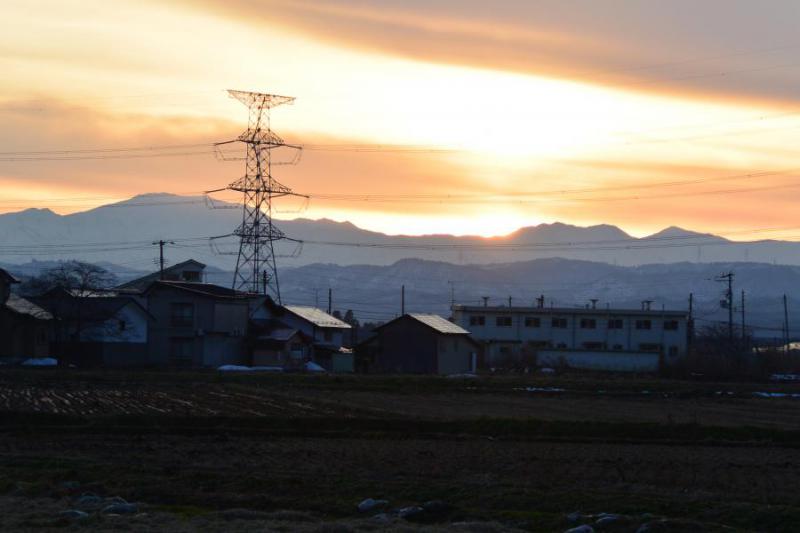 2016年12月21日は冬至。1年で最も昼の時間の短い日。偏屈老人の中で冬至といえば、雪が降る寒い日、雪は降らなくてもどんよりと雪雲がかかり1日中寒い日、午後4時前には薄暗くなる陰気な日、といった暗いイメージしかない。ところが今年の冬至は、朝の濃霧が晴れたらこの時期には珍しい快晴となった。4日前に降った雪は跡形もなくなり、穏やかな日和に誘われて散歩に出た。ミヤマザクラの実だけが落果もせずに枝をしならせている。鳥も食わないのか・・・実を口に含んでみる。 マズイッ! スッパクもなければ、ニガクもない。「味もそっけもないとはこのこと」とナットク。そして、冬至の夕日がどこまで南下しているのかを確かめる絶好の天候でもあった。我が家から見てどのあたりに日が落ちるのか。このあたり、あのあたりと予想しながら日暮れを待った。午後4時すぎ、太陽は予想よりもはるかに南の飯豊連峰の向こう(南西方向)に沈んだ。夏至の時は6時50分ごろ葉山連山の南端あたり(北西方向)に沈んだと記憶している。地図で線を引いてみるとおよそ90度移動していることを確認してこれまたナットク。