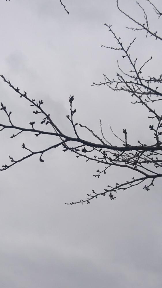 最上川桜堤に来ています。現在の桜の開花状況をお知らせします。標準木、まだまだつぼみは固い。お花見会場となる東屋付近の様子です。