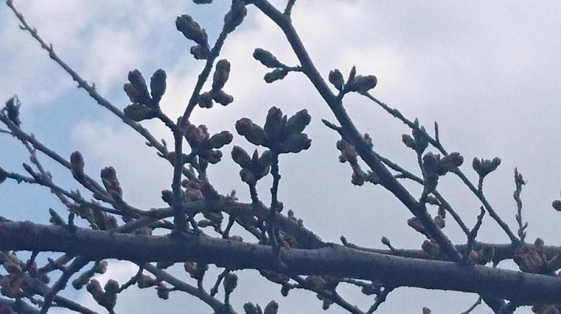 最上川桜堤はまだつぼみです。昨年はすでに満開でした。