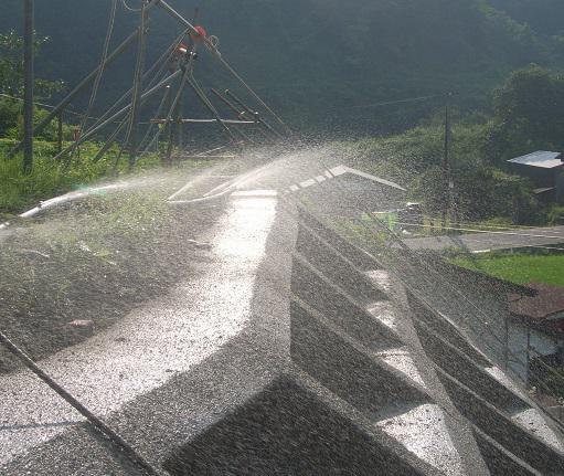 ▼吹付法枠の湿潤養生