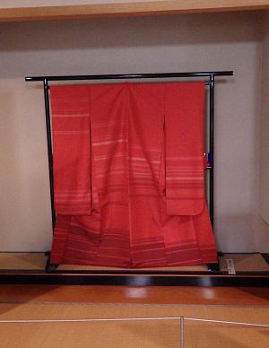繭から紅花などの染材、媒染剤から織の作業など、全て白鷹産、白鷹製の「紅花先染め振袖」が展示がされていました。