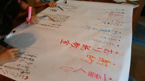 長井市ジュニアリーダー研修会H28.7.24(日)野川まなび館 長井市内の各小学校中学校の中から選ばれたジュニアリーダーの方々の研修会(主催:長井市子ども会育成会連合会さん)が開催されましたその中で「ふれあい福祉まつり(9/17(土)開催予定)」のゲームコーナーの企画をしていただきました!当日は市内の各学校から小学生7名が参加午前中はカヌー体験や流しそうめんをされたそうです(楽しそう!)午後からはいよいよ「ふれあい福祉まつり」の企画会はじめに「ふれあい福祉まつり」がどんなお祭りなのか説明を聞いてもらいその後グループに分かれてゲームコーナーの企画を開始! 小さい子どもたちやお年寄りなど参加するみんなが楽しめるゲームを意見を出し合いながらみなさん一生懸命考えてくれました!(感激!!)4つのゲームの企画が決定!!ふれあい福祉まつり当日がとってもたのしみです! みなさん話し合いがとっても上手でアイディアもたくさん出してくれてすばらしかったですまつり当日もぜひぜひよろしくお願いしますね!長井市ジュニアリーダーさん、長井市子ども会育成会連合会のみなさん大変ありがとうございました!※「ふれあい福祉まつり」開催予定!!日時:9月17日(土)10:00〜14:30場所:生涯学習プラザどなたでも参加できる楽しいお祭りです!みなさんぜひぜひのぞいてみてくださいね!