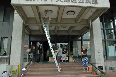 途中で雨が降ってきてしまい、急きょ施設の中に会場を移すことになり