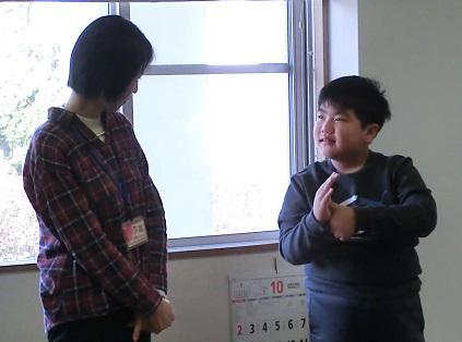 10月16日(日)致芳地区の土曜ランドで福祉教室を行いました。今回は手話教室!お家の方も参加してくださいました。子ども達は最初は緊張した様でしたが、すぐに笑顔が広がり打ち解けた様子でした。まずは手話に関するクイズに挑戦!!「手話はジェスチャーなので言葉ではない。○ か × か?」みなさん一斉に「×」を挙げました。正解は・・・手話は「言葉」なので、「ジェスチャー」とは違います。クイズでウォーミングアップした後は・・・まず、手話で「私の名前は○○と言います。よろしくお願いします。」という表現を覚え、2人一組になって自己紹介の練習をしました。皆さん あっという間に覚えて、上手に表現していました。すばらしい!!次に数字を手話ではどう表現するのかを覚えたり、ウサギ、タヌキ、犬・・・動物を手話でどう表現するのか練習したりしました。↓ 手話で「象」を表現してます(*・∀・)手話を使って「誕生月足し算ゲーム」「私は誰?ゲーム」、「伝言ゲーム」をしました。とっても盛り上がり、笑顔いっぱいの土曜ランドでしたヾ(*´∀`*)ノ ♪最後に・・・「心のバリアフリーマスターチャレンジカード」にスタンプを押して参加者全員に渡しました。 参加してくださった皆さま、お疲れ様でした!