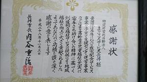 ありがとうございました。パート1 11月3日に長井市から市政功労の感謝状をいただいてきました。この賞は、まごころサービス長井の協力会員の方々のおかげでいただけたものです。そこで、協力会員のみなさんでお祝いしよう!!ということになり、昨日祝賀会&忘年会を行いました。賛助会員と協力会員とあわせて、36名の方がご出席くださいました。まごころでは、総会以外になかなか皆さん顔を合わせる機会がないのでとてもよい日になりました。一年に一回は、こんな会があればいいんだなと感じた事務局でした。
