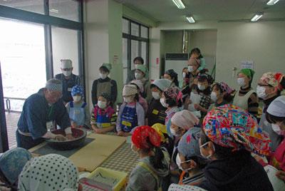 レンジ教室。冬の恒例事業そば打ち体験教室を行いました。