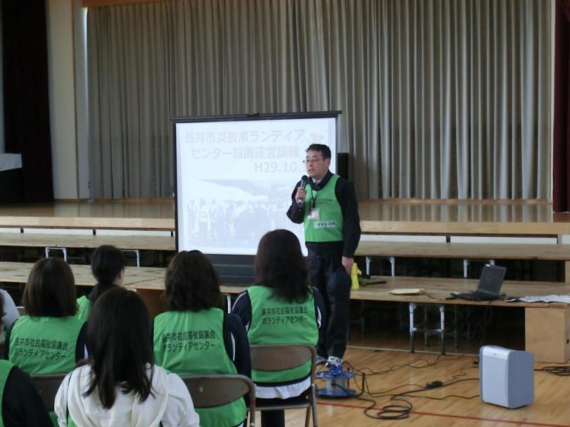 10月1日(日)長井小学校において市の防災訓練が行われました。長井社協でも例年通り、災害ボランティアセンター運営訓練を行いました。今回はこれまでの訓練の中で最多となる44名の参加となり、社協職員の他、市職員の方々、長井青年会議所さん、ボランティアコーディネーターの方が参加してくださいました。実際の災害を想定し、ボランティアに来てくださった方の受付やニーズとボランティアさんをつなぐマッチング、資機材の提供訓練等を行い、災害が起きた際のボランティアセンターの流れ等を学ぶことができました。今後も災害時の備えと平常時のつながり(連携)・顔の見える関係作りを大切に活動してまいります。災害ボランティアセンター運営訓練に参加ご協力いただいたみなさん大変お疲れさまでした。災害ボランティアセンターについての説明(災害ボランティアセンターはいつでもあるわけではありません)【災害ボランティアセンター開設(運営訓練)】3班に分かれてもらい、運営役・ボランティア役・被災者役を体験してもらいました。◇受付班笑顔が一番大事な受付班、ボランティアさんの受付・保険加入等を行います◇マッチング班被災された方とボランティアさんをつなぎます◇資機材班活動に必要な資機材をお渡しします◇ボランティアさんが被災者さん宅を訪問◇採点結果発表今回は遊び心をいれ各担当の対応を、被災者側はボランティアさん側を、ボランティアさんは運営側と被災者側を採点していただきました。最高得点の班には、せせらぎの家で制作した特製運営訓練バージョンキーホルダーを贈らせていただきました。◇アンケート結果※災害ボランティアセンターについての説明感想では @とても有意義だった 53.1% A有意義だった 46.9% Bどちらともいえない 0.0% Cあまり効果がなかった 0.0%時間では @長い 15.6% Aちょうど良い 84.4% B短い 0.0%※災害ボランティアセンター運営訓練感想では @とてもイメージできた 27.0% Aイメージできた 56.8% Bどちらともいえない 16.2% Cあまり理解できなかった 0.0%時間では @長い 24.3% Aちょうど良い 64.9% B短い 10.8%今回の運営訓練では、貴重な意見・感想をいただきました。問題点を見直し来年度の運営訓練につなげていきたいと思います。これからも、ご指導・ご協力宜しくお願いいたします。たいへんお疲れ様でした。