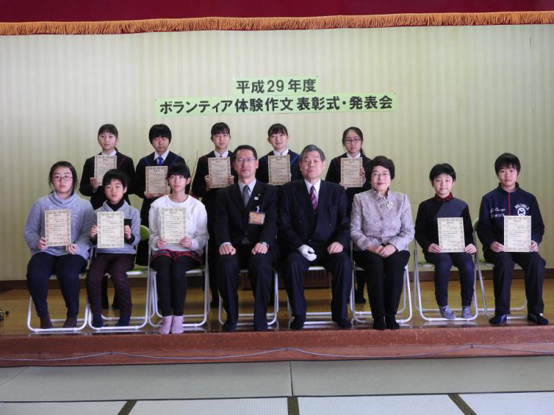 ▼「特選2名、入選9名」を表彰・ボランティア体験作文