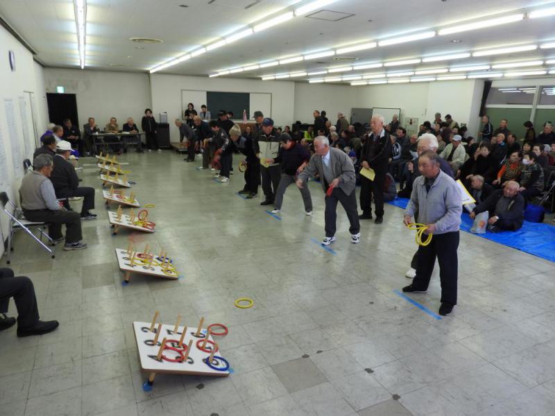 2月22日 (木)、市民文化会館にて上記大会を行いました。小出・宮・致芳・西根・平野・豊田・伊佐沢の7地区から各20名の選手が出場しました。人数の多い地区はこの大会のために、予選会を行い出場選手を決めています。会場は選手と応援に来た人でいっぱいになり、暖房が無くても暑いくらいでした。総勢170名以上は会場に居たと思います。 審判長から競技上の注意の説明の後、ホイッスルの音と共に競技が始まりました。 最初は団体戦で、その後個人戦になります。 輪が得点板に当たる音が響き、選手のみなさんは真剣な眼差しで輪を投げていました。見ている人たちも緊張しながら見ており、一投投げるごとに拍手をしたり、残念がったりする姿が見られました。パーフェクトが出ると、大歓声が起きました。 集中力が必要で疲れるかと思いますが、そんな事を感じさせず試合をしていました。みなさん、お疲れ様でした。結果は以下のとおりです。団体戦 優勝 西根地区 8,187点 準優勝 平野地区 4,537点 第三位 伊佐沢地区 4,528点個人戦 優勝 遠藤 幸男 様 660点(西根) 準優勝 孫田 功 様 635点(西根) 第三位 孫田 幸子 様 600点(西根)おめでとうございます!!