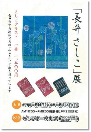 長井さしこの伝統を受け継ぐさしこ教室の皆さんによる展示会が開催されます。