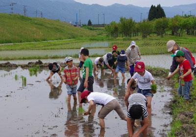 田植えをするのは今回が初めてだという児童も何人かいましたが、
