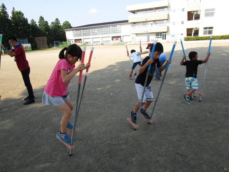 7月18日(水)15:00〜(豊田小学校グラウンド)今年度2回目の放課後子ども教室『Wednesdayクラブ』を開催し、豊田小学校26名の子ども達が参加してくれました。7月のWednesdayクラブは〈缶ぽっくりと竹馬〉遊びを行いました。缶ぽっくりは低い缶と高い缶を使って楽しみ、竹馬はWednesdayクラブスタッフの補助のもと、ゆっくりと一歩一歩進む練習をし、1人で乗れるようになった子ども達が何人もいました。
