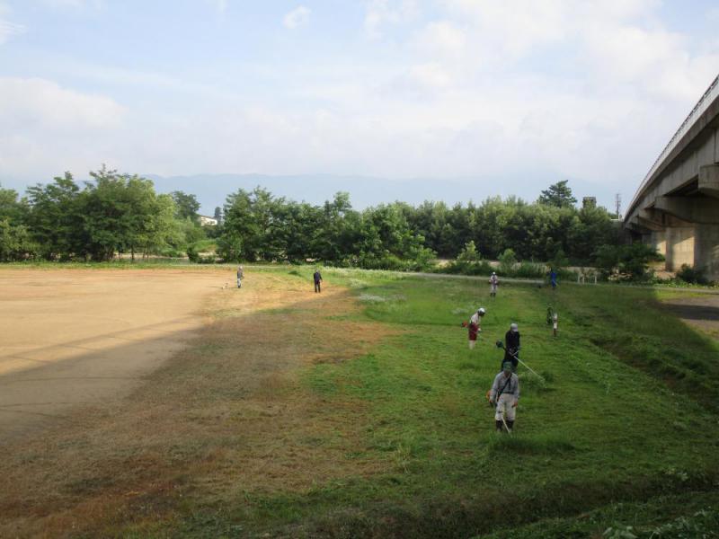 7月22日(日)6:00〜本日、朝6時より白川河川敷グラウンドにて、草むしり作業及びグラウンド周辺・ふれあいの広場周辺の草刈り作業を行いました。豊田地区地区長会、豊田ふるさと振興会、豊田地区分館連絡協議会、水辺のわらしっ子広場、運営協議会のみなさんにご協力していただきました。早朝作業でしたが多くの皆さんにお集まりいただき、ありがとうございました。