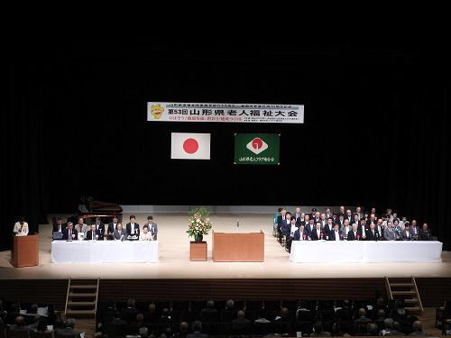 平成30年8月29日鶴岡市の「荘銀タクト鶴岡」にて、県老人福祉大会が開かれ、長井市老人クラブからも4個人二団体が表彰されました。高砂寿会の五十嵐繁会長が、登壇し知事感謝状を受け取りました。受賞された方々を囲んで記念撮影受賞された皆様、おめでとうございます。★山形県老人福祉功労者知事感謝状受賞者 ・芳賀 貞雄 様(白山会) ・高砂寿会 様 (五十嵐 繁会長)★山形県老人クラブ連合会会長表彰受賞者 ・梅津 昌 義 様(寺泉寿会) ・山普@智恵子 様(幸町寿会) ・中道寿会 様 (高山 昌博会長)★女性委員会設立20周年特別表彰受賞者 ・高梨 紀子 様 (高砂寿会)