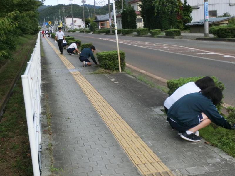 9月11日(火)長井高校1年生199名がホームルームの時間の1時間を使って、ボランティア活動に取り組みました。長井高校さんから長井市社会福祉協議会の方へボランティア活動の相談があり、「少しでもボランティアに関心・興味を持っていただけるなら」と言う思いから、地域・施設の方よりご協力いただき、ニーズを提供させていただきました。11施設のニーズから、希望する施設を第3希望まで選択してもらい、地域・施設の希望人数に合うように調整させていただきました。今回は第3希望内で全員調整できましたが、第1希望通りにはいかなかった方もおられましたが、各施設で一生懸命活動いただきました。地域・各施設での活動の様子を紹介します。1、四ツ谷地区(道路清掃)51名 2、館町南地区(道路除草)51名 3、レインボープラン市民農場(アスパラ菜の種まき)23名 4、南長井駅(清掃・周辺の草むしり)10名 5、白山保育園(玄関掃除・園庭の草むしり)10名 6、南学童クラブ(途中までのお迎え・外での交流)13名 7、南学童クラブ(園庭と外通路の草むしり)8名 8、地域密着型特別養護老人ホーム 野の香(車いすの清掃)7名 9、リバーヒル長井グループホーム館町(車いすの清掃)3名 10、リバーヒルデイサービスセンター輝ら凛(出入口の清掃)3名 11、多機能事業所だいまち(窓ふき)9名 12、追加施設 北学童クラブ(窓ふき・交流)11名 今日は、約1時間お疲れ様でした。地域・施設の方々も来ていただいたことに、嬉しく感謝しておられました。これを機会にボランティアに興味・関心を持って頂ければと思います。ボランティアクイズから始まった活動、ありがとうございました。