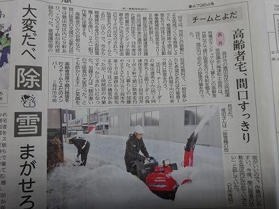 長井市より貸与いただいた除雪機にて、”リーダーの塚田道男さん”と”副リーダーの梅津保宏さん”が、高齢者宅3件の玄関先道路を除雪し、利用者の方に喜んでいただきました。