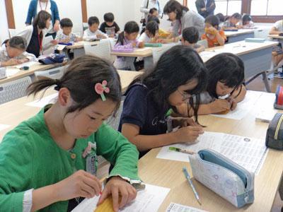 中央地区の放課後子ども教室「やんちゃ放課後ひろば」。6月は長井市社会福祉協議会の荒井さんと高野さんにご指導いただき「きみにもできるよ!ボランティア!〜目が見えないってどんなこと?」を行いました。 ▽旧長井小学校第一校舎を会場に約40名の長井小児童が参加しました 目に障がいのある人たちが指で触って読む字「点字」について学び、点字の名刺を作りました。 ▽身の回りのどんなところに点字があるのかを教えてもらいました いよいよ名刺作りに挑戦!まずは点字の一覧表を見ながら、自分の名前を点字の形に鉛筆でかいてみます。 ▽1文字ずつ探しながらの下書き、みんな真剣です! 下書きができたら「点筆(てんぴつ)」という道具を使って名刺を作っていきます。 ▽下書きを見ながら慎重に点を打っていきます ついに完成! 1枚の名刺を丁寧に仕上げる人もいれば、住所や電話番号まで入れたり、家族の分の名刺を作る人もいましたが、特別な名刺を手に入れてみんなうれしそうです。 ▽かんせーい! 最後に、歩道の点字ブロックや身障者用の駐車場などの話を聞きました。悪気がなくても、そういう場所に自転車や物を置いてしまうことで困る人がいること。そういったことを想像できる優しい人になれるように気をつけていきたいですね。 次回、7月会は旧長井小学校第一校舎で工作の予定です。お楽しみに!