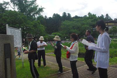 中央地区に約60か所ある史跡案内板。コミセン運営協議会の教育文化専門部の方にご協力いただき、劣化等の点検作業を行いました。中央史談会の皆さんにもご協力いただきながら、毎年少しずつ修繕などを行ってはいるのですが、風雨にさらされることで錆びたり、文字が見えなくなったりしているものもチラホラ。郷土の歴史を紹介する立札なので、これからも大切にし、活用していきたいと思っています。 暑い中、点検に参加していただいた皆様、ありがとうございました。 ▽あやめの花も見ごろを迎えていました ちょうどこの日はあやめ写生大会が開催されていたあやめ公園。見ごろを迎えています。 あやめ公園の園内にも、蒲生直英詩碑やあやめ公園開園記念碑 あやめ公園「山形県一名所」碑などの史跡案内板があります。公園を訪れた際にはぜひ探してみてください。