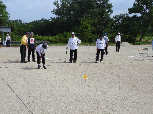 令和元年7月2日(火)長井市老人クラブ連合会主催「第33回交通安全ゲートボール大会」を開催しました。老人クラブの会員が日頃から、交通安全を心がけるよう、ゲートボール競技をしながら横断歩道を渡ります。右見て左見て、手を挙げて渡ります。優勝は「草岡チーム」でした。優勝旗を受け取る、草岡チーム主将高世賢一さん。大会結果・優勝 草岡チーム(西根地区)・準優勝 勧進代チーム(西根地区)・第三位 平野Aチーム(平野地区)・第四位 愛宕チーム(伊佐沢地区)・第五位 桜チーム(伊佐沢地区)皆さん暑い中、白熱した試合となりました(^^)/