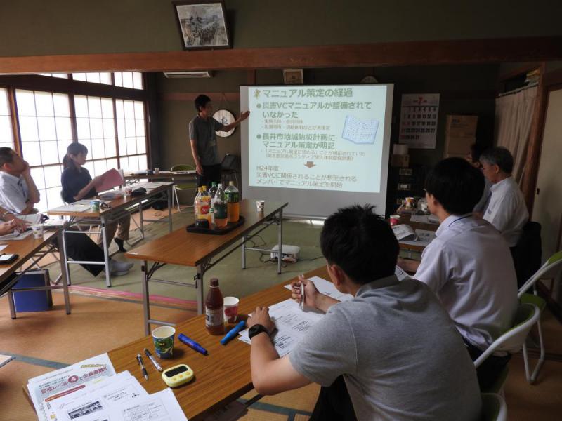 令和元年度『災害VC(ボランティアセンター)連絡会』を7月8日(月)15:15〜17:00 老人福祉センターで12名の方に参加いただき開催しました。メンバーには、災害VC設置運営マニュアル作成時にご協力いただいた、ウエザーハート災害福祉事務所 千川原公彦様、長井青年会議所様、災害VCコーディネーター取得者様、長井まちづくりNPO様、置賜総合支庁危機管理室様、市総務課様、市地域づくり推進課様、市福祉あんしん課様、県社会福祉協議会に登録いただいております。『災害VC連絡会』は、自然災害発災時に少しでも早くスムーズに対応できるように、日頃から@災害VCの内容・動きの共有化を図る、A顔の見える関係づくりを目的に年1回開催されています。 今年度は、1)災害VCマニュアルの確認(行動・対応の確認) 2)ビデオによる「逃げ遅れる人々、災害と障がい者」を研修しました。「逃げ遅れゼロへ!」水害・土砂災害の防災情報の伝え方が変更になったため、市総務課危機管理室様より丁寧に説明していただきました。連絡会に参加いただきました皆さま、お疲れ様でした。今後とも宜しくお願いいたします。災害VCは、被災地域の各種市民団体、赤十字、行政、社会福祉協議会等が協働で運営する形態が多く、中心となるのは社会福祉協議会があたることが多くありますが、理由としては1、国の指針2、行政の防災計画で、災害VC運営は社会福祉協議会に委託する計画の自治体が多い3、社会福祉協議会が運営する前提で、運営スタッフの育成、講習が全国的に進んでいる4、全社協、県社協で、継続的な社協職員派遣の仕組みができている5、共同募金会が、運営資金を提供する仕組みが整っている などが考えられます。上記は、運営する前提での仕組みですが、理念面から言えば「地域福祉をする団体」という理由からかもしれません。自然災害が頻繁に発生する昨今ですが、災害VCを立上げ・運営するには規模にもよりますが30〜40人が必要と言われています。長井市内の方で、運営側に携わってみたいと思う方がおられましたら、長井市社会福祉協議会(電話:88−3711)まで連絡ください。県社会福祉協議会主催の「災害VC立上げ・運営研修会」等に一緒に参加してみませんか。