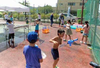 中央地区の放課後子ども教室「やんちゃ放課後ひろば」。8月は夏休みを利用しての午前中の開催です。交流センターふらりを会場に水遊びを楽しみました。 ▽今回も長井小学校の児童40名以上が参加してくれました。また、夏の体験ボラン ティアで南陽高校と米沢中央高校の生徒さん6名にも活動を手伝ってもらいました。 いよいよ活動スタート!うさぎ、さる、ペンギンの3つのチームに分かれて、3つの遊びのコーナーを順番で回りながら楽しみました。 ▽あそび@ 水風船キャッチボール&ペットボール倒し 少しの衝撃ですぐに割れてしまう水風船でキャッチボールをしたり、ペットボトルの的を倒して遊びました。風船に入った水をかぶって参加者もスタッフもすぐにずぶ濡れ。でもみんな楽しそうです。 ▽あそびA 水鉄砲でねらってまもってじゃんけんぽん 少し間隔を開けて平行に並べたテーブルをはさみ、チーム対抗でゲームをしました。1人ずつじゃんけんしては勝った人が相手に向かって水鉄砲を放ち、負けた人は紙皿で防御するゲームです。じゃんけん1回ごとに列の後ろに並んで何回も挑戦!笑顔と歓声が溢れました。 ▽あそびB 実験!表面張力&トルネード 表面張力を利用して水のいっぱい入ったカップを逆さにしたり、ペットボトルのキャップに穴を開け、水の流れを利用してトルネードのようなうずまきをつくる実験をしました。 この日は35度を超える猛暑日でしたが、こまめに休憩をとり水分補給しながら楽しく活動することができました。最後はみんなで片付けもしっかりと行い、着替えをして解散しました。 夏休み中盤の楽しい思い出になったのではないでしょうか。 来月からは通常の放課後の活動に戻ります。9月は稲刈りの予定です。どうぞお楽しみに♪