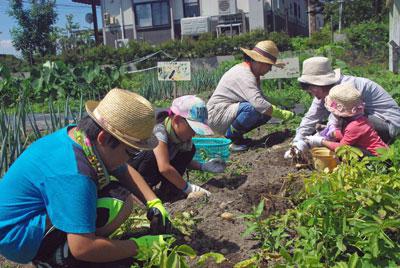 就園前の幼児と保護者が活動する共育セミナーなかよしくらぶと小学生とその家族が活動する親子チャレンジ教室 畑の楽耕(がっこう)は、同じ敷地内の畑で野菜を育てています。小学校の夏休みの期間を利用して、合同での活動を行いました。 まずは畑の楽耕からスタート。畑の野菜を材料に小学生が中心になって昼食会の準備をしました。 ▽カレーやハヤシライスを作りました 少し遅れてなかよしくらぶのお友達が合流。出席者の読み上げや自己紹介、日程の確認を行ったら早速、畑に出発です! なかよしくらぶの時にはサポートくらぶのスタッフのみなさんが行っている交通安全指導も、小学生のお兄さん、お姉さんが積極的に手伝ってくれました。 畑の道具も分担して運び、畑に到着です。夏真っ盛りの暑い日でしたが、じゃがいも掘りを中心に夏の野菜を収穫しました。 ▽ゴロゴロ出てくるじゃがいもに子どもたちは大喜びです! ▽たくさんの野菜を収穫できました ▽おも〜い 畑でいっぱい汗をかいた後は、お待ちかねの昼食会です。小学生が「いただきます」や「ごちそうさまでした」のあいさつを担当し、収穫した野菜で作ったカレーやハヤシライスをおいしくいただきました。 ▽いただきます ▽おいしくて笑顔がこぼれます。おかわりもいっぱいしました。 なかよしくらぶのお友達はお兄さん、お姉さんとのふれあいが、畑の楽耕の小学生は小さなお友達のお世話がするのがとっても楽しそうでした。 夏休みが終了し、今はそれぞれの日程に戻って引き続き活動をしています。 ▽夏休み明けの畑ではたくさんの野菜が取れました △かぼちゃやにんじんも全て収穫しました! 次は10月に合同芋煮会を予定しています。また会えるのを楽しみに、それぞれの活動を頑張っていきましょう!