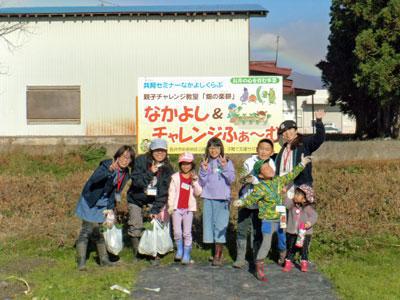 5月の開講以来、6組の家族が活動を続けてきた畑の楽耕(がっこう)。共育セミナーなかよしくらぶとの芋煮交流会の後は、収穫した野菜の販売体験を中心に活動してきました。 ▽サツマイモの収穫 ▽参加者にいただいた「あきたこまち」の新米をおにぎりにしていただきました ▽販売体験ではとれたての野菜を畑で包んで会場に運びました ※泥あそび…ではなく、里芋を洗っています(笑) ▽販売体験がんばるぞー! ▽長井マラソンの会場では走り終わったランナーのみなさんや、学校のお友だちも 買いに来てくれました。 ▽交流センターふらりまつりでも大盛況でした そして冬が訪れる前に畑の活動は終了です。最後の収穫は落花生。苗をもらい今年初めて栽培しました。 ▽力をあわせて畑の後片付けしました 閉講式の日にはキッズキッチンに挑戦!子どもたちが2人1組になって、パプリカやニンジンなどの野菜が入ったパンケーキ作りにチャレンジしました。大人は手出し無用!包丁や火を使うのでハラハラしましたが、これまで何度も調理実習をしてきたので、みなさんとてもスムーズです。 ▽キッズキッチンの様子 ▽使った道具はきちんと洗います ▽お母さんとお父さんが作ったカボチャのサラダを添えて、完成! ▽最後のお楽しみ会を参加者全員で楽しく過ごしました 活動が終わったら、いよいよ閉講式です。 ▽写真で半年間の活動を振り返りました ▽修了証と記念品が贈られました ▽参加者による作文発表 活動が始まった頃には、感想を発表するのにも緊張して声が小さくなっていた参加者も、閉講式の発表は大きな声で堂々としていました。 今年は3つの小学校から6組の家族が参加してくれました。学年や学校の垣根をこえて、みなさんとても仲良くなり、助け合って活動することができました。 ▽最後はみんなで記念撮影! みなさんご参加ありがとうございました!来年もぜひ一緒に活動しましょう!待ってるね♪