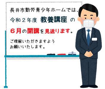 ▼【お知らせ】教養講座の6月の開講を見送ります
