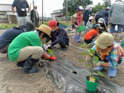 小学生とその家族が、畑での野菜の栽培や収穫、育てた野菜の調理や販売などを体験していく、食の安全安心事業 畑の楽耕(がっこう)が開講しました。新型コロナウイルス感染症の影響で、例年より半月遅れてのスタートになりました。活動は中央コミセン安全安心専門部が担当します。 ▽開講式の様子 開講式では、家族ごとに自己紹介を行い、主に担当する野菜を話し合いで決めました。苗の植え方なども学習し、さっそく畑(チャレンジふぁ〜む)に向かいます。 ▽お話を聞きながら植えつけに挑戦しました ▽トマトやナス、ピーマンなどを植え、ニンジンの種をまきました 今年初めての活動でしたが、小学生が中心になって、みんなで協力しながら作業しました。畑の作業の後は、みんなで道具を片付けて反省会です。活動の内容や感想を日誌に記入します。 ▽感想発表会 学校も再開したばかりで、まだ生活のペースを取り戻すための努力をしている段階だと思いますが、参加者の小学生のみなさんの感想からは、畑での活動への期待や、野菜が育つのを楽しみにする気持ちが伝わりました。 熱中症や感染症など、例年以上に注意することが必要になる今年の活動ですが、最後まで楽しくがんばっていきましょう! ▽みんなで記念撮影!