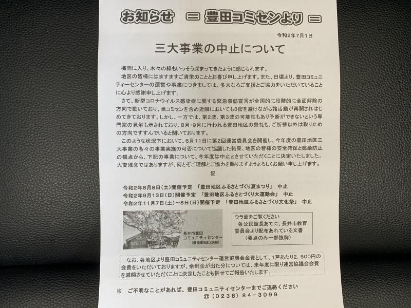 豊田コミセンより【三大事業の中止のお知らせ】