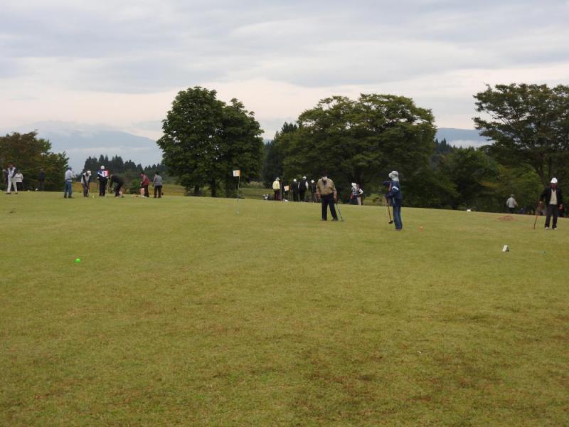 10月1日(木)、古代の丘(太陽の広場)を会場に「第21回 高齢者グラウンドゴルフ大会」が、長井市老人クラブ連合会(会長:五十嵐 繁)主催で開催されました。今年度は、昨年度より20名近く多い96名の会員の方に参加いただき、競技上でのエチケット・ルールを厳守しながらも、和気あいあいの中で行われました。グラウンドゴルフは、標準コース 50m、30m、25m、15mを各2ホール 合計8ホール×2で構成され、旗の付いているホールポストに直径60mmのボールが入るまでの打数を数えて、その打数が少ない方が勝ちになります。1打目でホールポストに入った場合は、ホールインワンとなり、全ホールの合計打数からマイナス3打となります。今回の大会では、50mのホールでホールインワンが出ました。前日準備で、ホールポスト組立・旗の取付と16ホールのコース設定を実施 受付では、参加者全員・役員の検温を実施。37度を超える方は一人もいませんでした 市老ク連 五十嵐会長あいさつ(写真左)と禅徳雄競技委員長(写真右)からのルール等の説明 競技中の様子です 結果集計の間、15m離れたホールポストにホールインワンゲームを行いました。達成者には豪華?景品も 成績発表する禅競技委員長(写真左)と優勝した渡部豪さん:成田福寿会(写真右)) 準優勝の平井良太郎さん:白山会(写真左)と第3位の高橋幸應さん:清水町しあわせ会(写真右) 第4位の青木和子さん:成田福寿会(写真左)と第5位の井上正さん:川窪百歳会(写真右) ブービー賞の菅沼かづ子さん:時庭長生会(写真左)と10位までのみなさん(写真右) 第6位から第10位までとホールインワン達成者は下記の方々です。第6位 小笠原 正士(四ツ谷親和)第7位 渡部 英子 (中道寿会)第8位 青木 悦巳 (成田福寿会)第9位 新野 栄作 (上平山長寿会)第10位 平田 一彦 (上の台すこやかクラブ)ホールインワン達成者* 渡部 豪さん (成田福寿会)* 平井 良太郎さん (白山会)* 高橋 幸應さん (清水町しあわせ会)* 青木 和子さん (成田福寿会)* 小笠原 正士さん (四ツ谷親和会)* 渡部 英子さん (中道寿会)* 齋藤 幸男さん (草岡寿会)* 渋谷 忠壽さん (上伊佐沢寿会)* 斎藤 昭子さん (成田福寿会)* 高橋 日出子さん (高砂寿会)* 渡部 俊雄さん (八雲寿会)* 梅津 巧三さん (高砂寿会)☆ おめでとうございました ☆参加いただきました会員のみなさん、実行委員でお手伝いいただきました伊佐沢地区、西根地区、致芳地区の単位クラブ会長のみなさんお疲れさまでした。