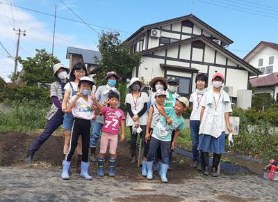 小学生とその家族が畑での活動を通して様々な体験をする食の安全安心事業 畑の楽耕(がっこう)。残暑の厳しかった8月〜9月も子どもたちが中心になって作業をがんばりました。 ▽収穫や除草。畑でもできるだけマスク着用でがんばっています。 新型コロナウイルス感染症の影響で例年より遅れてのスタートとなった畑の楽耕ですが、育てている野菜の原産地や栄養、どんな料理に向いているのかなどをみんなで学んでいます。 ▽じゃがいもについての学習 8月末には旧長井小学校第一校舎前で開催された朝ごはんマルシェで野菜の販売体験も行いました。 ▽朝ごはんマルシェ。値札も子どもたちの手作りです。特徴なども詳しく書いています。 紹介した料理をお家で挑戦してもらっていましたが、感染症予防対策をとりながら少しずつ料理実習も始めています。 ▽家族ごとに離れて役割分担しながら調理しています。 ▽この日は畑の野菜でラタトゥイユを作りました♪ 9月に入ってからは秋野菜の種をまきました。チンゲンサイや水菜などの葉物を育てています。 ▽秋野菜の種まきの様子 共育セミナーなかよしくらぶとの合同芋煮会に向けて、里芋も大きく育ってきました。畑の季節もあと少し。体に気をつけて楽しく活動していきます。
