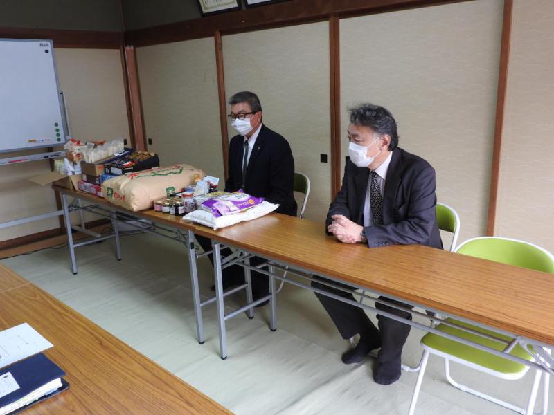 12月24日(木)長井ライオンズクラブ【会長:安部秀一様 (株)安部組取締役社長) 様から、フードバンク事業へと沢山の食料品のご寄付をいただきました。コロナ禍で活動にも制限がかかる中で、何か地域の為に役立つことはないかと思案していたとき、長井市社会福祉協議会でフードバンク事業をしていることを知り、コロナ禍の中で生活に困窮している方がおられれば、是非お役に立ちたいと会員の方々にお声がけをしご協力いただいた善意の証です。長井市老人福祉センターを訪問された長井ライオンズクラブ会長 安部秀一と副会長兼幹事 中井晃様(山形鉄道 株 代表取締役社長)安部会長様から米、缶詰等を受け取る長井市社協 松本常務理事長井ライオンズクラブ様、6月に続いてのご寄付誠にありがとうございました。地域福祉のために有効に使用させていただきます。追記:長井ライオンズクラブ様には、毎年除雪ボランティアにもお申込みいただき、高齢者の方々が冬季間安心して生活できる活動もしていただいております。