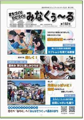 長井市中央コミュニティセンターだより「みなくぅ〜る」第152号を発行しました。 年度上半期のコミセン事業を紹介しています。どうぞご覧ください。 長井市中央コミュニティセンターだよりNo.152(PDF)