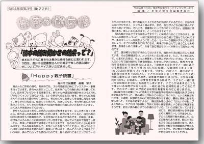 子育ての悩みや家庭教育などの問題について学び、情報交換を行うお茶の間交信。今年度第3号を発行しました。 メインテーマは「絵本の読み聞かせの効果って?」です。長井市立図書館の高橋智子さんに寄稿していただきました。具体的な読み聞かせの方法や、読み聞かせが親と子にどのような影響を与えるのかを解説していただきました。どうぞご覧ください。 お茶の間交信は保育の専門家を中心とした編集委員と、子育て中の読者の皆さんで作りあげる情報紙です。ご感想、ご意見を返信としてどんどんお寄せ下さい。メールでも結構です。 お茶の間交信(No.228)はこちらから(PDF)