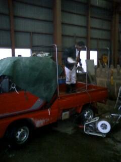 会社の工場でホロの骨枠を作ってもらってます。キャビンルーフと同じ高さで注文したはずなのに、30cmくらい高い…。