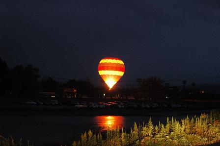 あやめ公園にて、みんなで灯そう「夢灯り」の熱気球が上空に舞ってます。空からみる約4000個の夢のランタンの灯りはどのように見えるのだろうか。