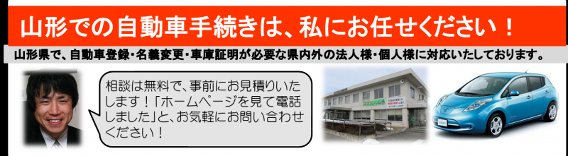 山形県での自動車手続きが必要な、自動車販売業者さま、法人さま、個人さま、山形県での自動車手続きはお任せ下さい!