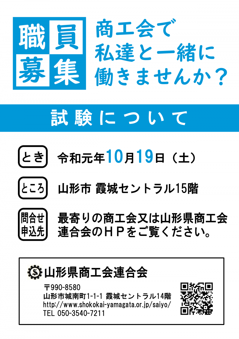 ▼令和元年度山形県商工会等職員採用試験の実施について