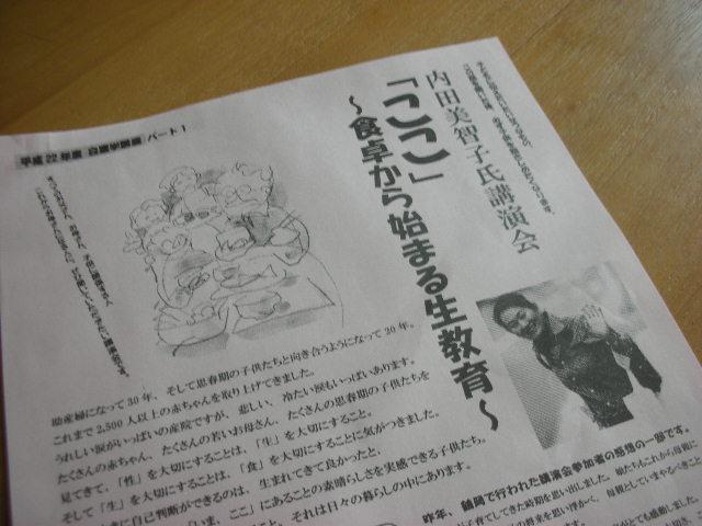 昨日白鷹町で内田先生の講演を聞いてきました。 以前DVDで講演を聞いてものすごく感動し、今回白鷹にいらっしゃるというので速攻で整理券をお願いしました。