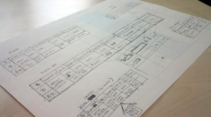 ハタと閃くと、瞬く間に何やら設計図らしきものが書き上がります。