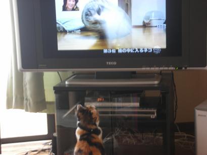 ネコの鳴き声に反応したのか、うちのマメさんがテレビ前に居座りじっとみてました(笑)