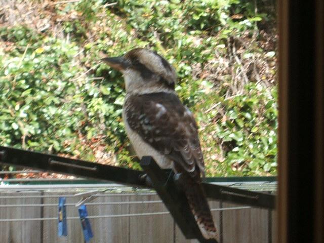 が、裏庭の洗濯物干しに止まってました。