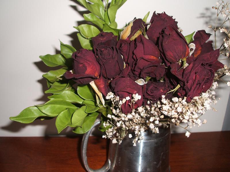 誕生日にもらったバラが枯れるのがもったいなくてドライフラワーにしました。