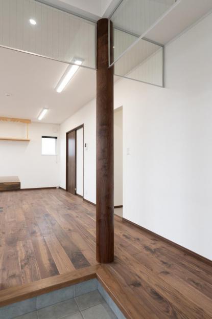 中にはいると、ウォールナットOPC(継ぎ目のない一枚ものの無垢材)の床材を使用してるため